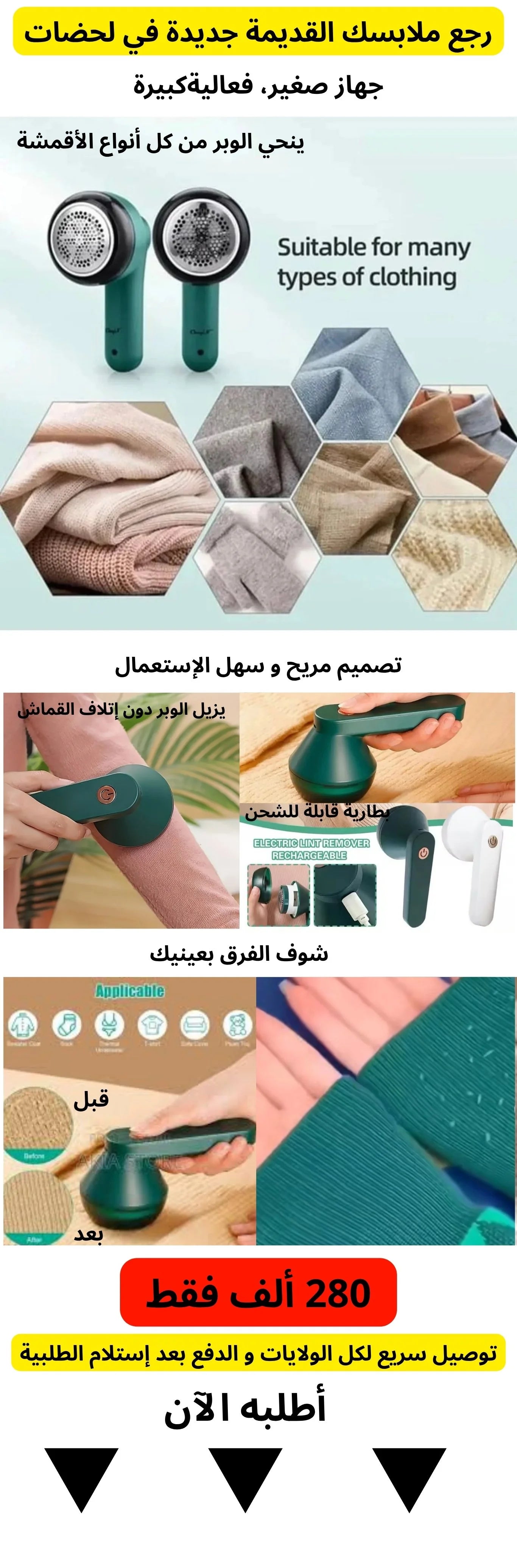 جهاز إزالة الوبر، بفظل هذا الجهاز الكهربائي الصغير تزيل الوبر و كريات الصوف من الملابس و الأقمشة بسهولة، ليمنحها .مظهرا جديدا و أنيقا